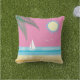 Ce coussin extérieur amusant est décoré d'une scène de plage tropicale agrémentée d'étoiles de mer, de mouettes, d'un voilier et de feuilles de palmiers sur un arrière - plan de ciel rose, ce qui en fait l'accessoire parfait en été pour la maison de plage, la piscine, le cottage, le patio, le pont ou la piscine.