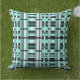Coussin Plaid en Aqua, Turquoise, noir & blanc