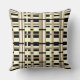 Cette coussin est moderne et présente une touche de couleur taupe, tan, noir et blanc.