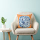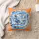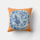 C'est un coussin qui comporte un plat chinois bleu et blanc classique sur un arrière - plan de mandarine, une gouache/peinture originales d'encre par l'artiste Anne Harwell. La conception est sur l'avant et le dos.