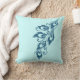 oreiller réversible bleu clair et sarcelle chic élégant à plumes de paon