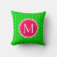 Ce coussin très appétissant présente des pois blancs classiques sur vert vif avec un monogramme rose et blanc que vous pouvez personnaliser avec votre choix d'origine.