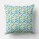 Coussin aux tons bleu et vert, motif à points de printemps lumineux et gai.