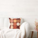 Jeter l'oreiller dans une empreinte géométrique moderne du milieu du siècle, dans une grille de neuf couleurs coordonnées - teintes de tan, brun foncé, rouille, terre cuite et crème, sur un arrière - plan chocolat