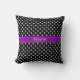 Motif à pois noir et blanc, étiquette avec ruban violet et monogramme