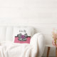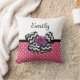 Quelle fille girly peut résister à ce mignon pois rose et blanc carré de pois motif jetez l'oreiller avec un arc de chevron noir et blanc tendance et un chic rose ruban violet. Il est facile de personnaliser ce rétro rose et violet répond au design moderne en ajoutant le nom de votre fille ado à la zone de modèle texte. Image imprimée plate, PAS le ruban de rosette réel et l'arc.