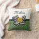 Coussin Points verts mignons Rose jaune Chevron Bow et nom