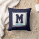 Coussin POIS bleus de la Marine Préppie Nom du monogramme