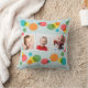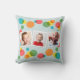 Créez un souvenir coloré et ajoutez du plaisir à la décoration de votre fête d'anniversaire en même temps. Cet oreiller est prêt à être customisé avec trois de vos photos préférées. (Les photos en forme de Carré fonctionneront mieux.) Vos photos sont mises en place contre un arrière - plan bleu clair accentué de pois colorés en bleu, jaune, vert, rouge et orange. Il y a un motif de point de polka de coordination à l'envers.