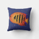 Main illustrée orange vif récif tropical flamme Poisson-ange sur un coussin bleu marine foncé