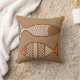 Moderne du milieu du siècle, lunatique, rétro motif de poisson jettent un oreiller, dans les tons tan, rouille, beige, marron et blanc, sur un arrière - plan marron cacao clair