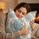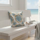Ce design coussin est un mélange de diamants, de triangles et de petits détails qui se mélangent agréablement. Si vous regardez de plus près, vous verrez même des formes de poissons cachées dans le motif — un clin d’oeil amusant et subtil à la nature. Les tons doux bleu et beige sont calmes, un peu comme l'eau bouge doucement. C’est un mélange parfait de naturel et de propreté, avec une touche vintage et moderne. Il apporte une touche d'inspiration océanique à tout espace.