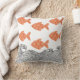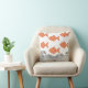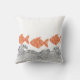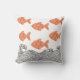 Poissons et vagues jettent l'oreiller. Les poissons sont confectionnés dans une douce orange de terre cuite et décorés d'un motif floral délicat, ajoutant une touche fantaisiste d'inspiration japonaise. Les vagues ci-dessous sont illustrées de fines lignes noires dans un style traditionnel de bloc de bois.