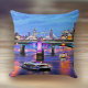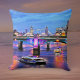 Ce coussin offre une vue nocturne stylisée sur le Southwark et le Tower Bridge depuis le Millennium Bridge, sur la célèbre Tamise, à Londres, en Angleterre.