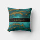 Monogramme en marbre doré turquoise Nom coussin personnalisé par Sandy Closs Blanc gris or, marbrée marbrée, élégante tendance moderne, chic, script noir, coutume, motif, nom monogrammé,