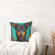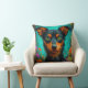 Oreiller décoratif vibrant avec un portrait de chien stylisé sur un fond floral sarcelle. Parfait pour la décoration intérieure, les sièges d'appoint, les amateurs d'animaux de compagnie et les intérieurs colorés à la recherche de détails d'art moderne ludiques.