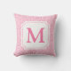 Ce design coussin a un arrière - plan poster de animal rose chaud partout. Au centre se trouve un cadre carré entaillé blanc avec un premier monogramme rose chaud.