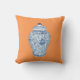 Ce coussin comporte une peinture originale par l'artiste Anne Harwell d'un pot chinois antique de gingembre de porcelaine dans le détail sensible avec bleu et le blanc sur un arrière - plan de mandarine. La conception est sur l'avant et le dos.