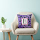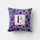 Un coussin comportant une conception pourpre d'empreinte de léopard. Personnalisez avec votre initiale.