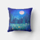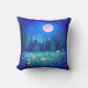 Jeter l'oreiller dans un paysage aquarelle d'un pré de fleurs sauvages et d'une forêt sombre sous une pleine lune