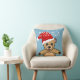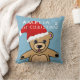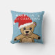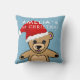 Premier Coussin de Noël de l'ours en peluche de Noël de l'ours de Père Noël. Joli ours en peluche avec chapeau de Père Noël rouge. L'arrière - plan est un bleu avec des flocons blancs. Personnalisez facilement avec votre nom.