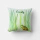 Cet oreiller à jetons est muni d'une petite grenouille verte femelle avec un ventre jaune assis parmi les herbes à l'étang. Elle semble seule comme si elle attendait que son Prince Charming apparaisse. L'image est répétée à l'arrière. Modifiez le nom ou supprimez-le entièrement.