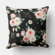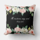 Jetez un oreiller avec une citation inspirante Écriture représente une belle aquarelle florale design avec des roses blanches et roses et de la verdure sur un arrière - plan noir. Il contient une partie de la Bible Verse Psaume bien-aimée 23:3, "Il restaure mon âme."
