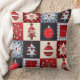 En vichy fantaisie de Noël en bleu et rouge et blanc cassé - de mignons arbres de Noël, des ornements et des flocons de neige décorés de boutons mignons et avec des en vichy et des pois comme arrière - plans pour les carrés. Un design de Noël préféré pour les fermiers et les familles cabines de campagne. Aucun vrai bouton ou tissu de courtepointe n'est sur ce produit, il est artistiquement créé pour ressembler à une courtepointe.