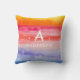 Eau arc-en-ciel chic et brillante jetez l'oreiller avec votre nom de famille customisé et monogramme.