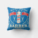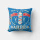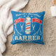 Coussin élégant qui est parfait pour n'importe quelle refuge du magasin de coiffeur, caverne d'homme, pièce de dortoir ou salon. Vieille école vintage regardant la conception où vous pouvez monogramme ou personnaliser avec des initiales, le nom ou le nom de la société. Excellent raseur-coiffeur. Rasage et coupe de cheveux, service de qualité. Couleurs bleues, blanches et rouges. Cadeau d'amusement pour des membres de quartet de raseur-coiffeur.