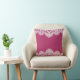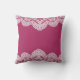 Un arrière - plan rose framboise brillant est magnifiquement contrasté avec une bordure en dentelle blanche complexe dans cette image, faisant un beau coussin qui va égayer n'importe quelle chambre. Ajoutez votre propre texte customisé, si vous le souhaitez. *Remarque : l'image est imprimée sur la surface et ne contient aucune dentelle réelle.* **Créée à l'aide d'oeuvres achetées à Digital Design Boutique à l'adresse http://digitaldesignboutique.com.