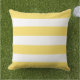 Un oreiller extérieur lumineux présentant des rayures horizontales larges jaunes et blanches joyeuses. Le motif de rayure de cabane ensoleillé apporte une énergie chaleureuse et heureuse aux sièges de patio, aux meubles de jardin ou aux lounges au bord de la piscine. Un accent frais qui anime instantanément n'importe quel espace extérieur avec la chaleur de l'été.