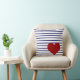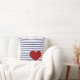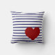 Coussin Rayures de bleu marine sur le blanc avec le coeur