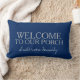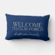 Accueil moderne de bleu marine à notre manuscrit de porche, nom de famille, coussin lombaire.