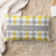 Motif à carreaux Houndstooth Jaune Ananas, Gris foncé et Blanc, Étiquette de monogramme avec ruban Gris foncé