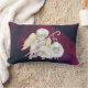 Un coussin lombaire à thème chrétien. Conçu avec un ange doux aux ailes jaunes tenant une houlette de berger. Assis avec des agneaux blancs et duveteux. Fond aquarelle bleu marine et bordeaux, avec de minuscules paillettes de faux or (pas de véritable paillettes, juste une image imprimée).