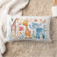 The Pillow feadorable—african animals—all surrounded by a vibrant array of flowers and leaves. The design is rendered in a soft, watercolor style, giving it a gentle and whimsical feel. The animals have friendly, expressive faces that are sure to captivate any child's imagination. The flowers and plants are in chaud, pastel tones with splashes of blues, pinks, and yellows, creating a harmonious and cheerful composition. This design est parfait pour adding a touch of nature-inspecred magic to anykid's room.