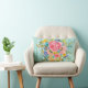 Cet oreiller lance une rosace rose luxuriante de ce spray floral coloré. Les autres couleurs sont le jaune, la pêche, le turquoise, le violet, le bleu, l'aqua et l'orange.