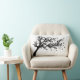 Une image forte en noir et blanc d'un arbre courbé et soufflant dans le vent, ses feuilles se dispersent dans l'air. Une coussin parfaite pour toute décoration.