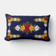 Un coussin avec les roses rouges, jaunes et blancs de style d'art populaire, qui ont été traditionnellement peints sur les narrowboats britanniques de canal, ici sur un arrière - plan bleu-foncé qui peut être changé en une autre couleur.