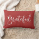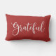 Un simple oreiller moderne à lancer avec le mot reconnaissant sur un arrière - plan de couleur rouge. Un joli ajout à votre décoration d'action de grâce. Vient dans une variété de couleurs. Conçu pour vous par Blackberry Boulevard.