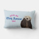 Un coussin lombaire avec une adorable loutre tenant son visage dans ses pattes. Un texte au-dessus de sa tête dit : Aie une journée absolument géniale. Jeu mignon écrit dans une police de typographie branchée.