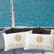 Coussin Rectangle Bateau blanc nom de bateau or volant côtier