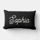 Ce coussin élégant affiche votre nom dans un script blanc tendance et rétro sur un arrière - plan noir foncé.