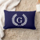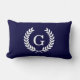 Coussin Rectangle Bleu Marine Laurier Blé Blanc Monogramme Initiale
