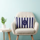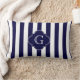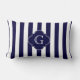 Coussin Rectangle Bleu Marine Rayures Blanches, Monogramme Label Nav