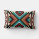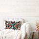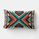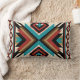 A Southwestern-inspired geometric pattern featuring striking diamond and chevron shapes in turquoise, deep red, black, and warm neutral tones. This symmetrical design draws inspiration from bohemian textiles, creating a timeless yet modern look.