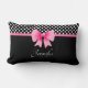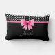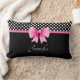 Coussin lombaire avec ruban rose sur un motif pois noir et blanc. Pour personnaliser, tapez votre nom dans le champ modèle.