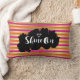 Un coussin mignon avec un élégant motif composé de rayures métalliques rose, orange et or (faux). Couché sur le dessus est une fente noire qui dit "Shine On" dans une police tendance fantaisie, avec une illustration d'un diamant blanc.