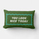 Simple et amusant, ce coussin lombaire vert double face et bleu aqua rose dispose d'un rectangle ondulé et de deux côtés différents mais coordonnés avec des rappels textuels amicaux de "vous avez l'air gentil aujourd'hui" et "vous êtes gentil et intelligent" pour répandre la positivité dans votre vie et votre maison. Vous pouvez également modifier le texte de votre propre message personnalisé !